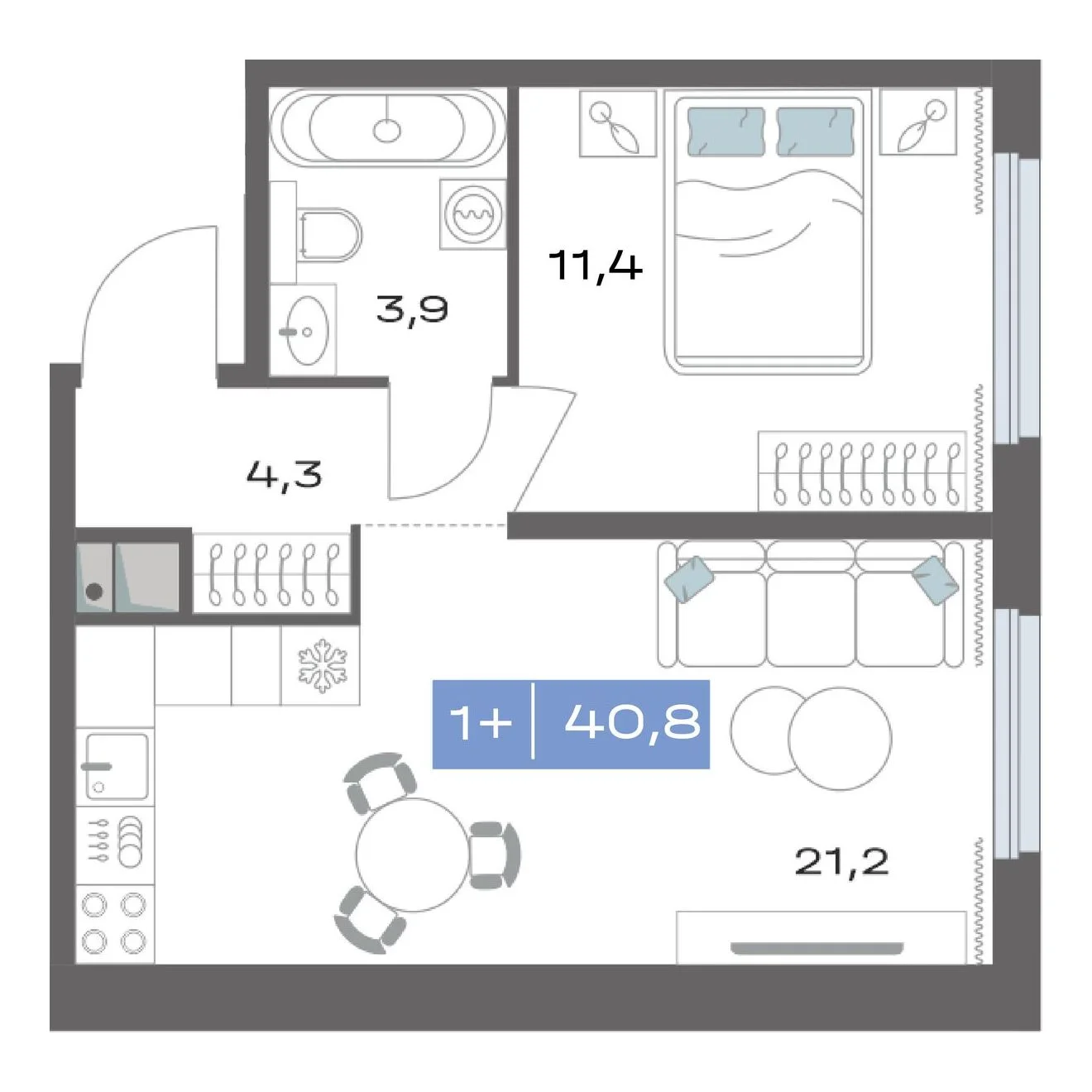 1-комнатная 40.8 м²