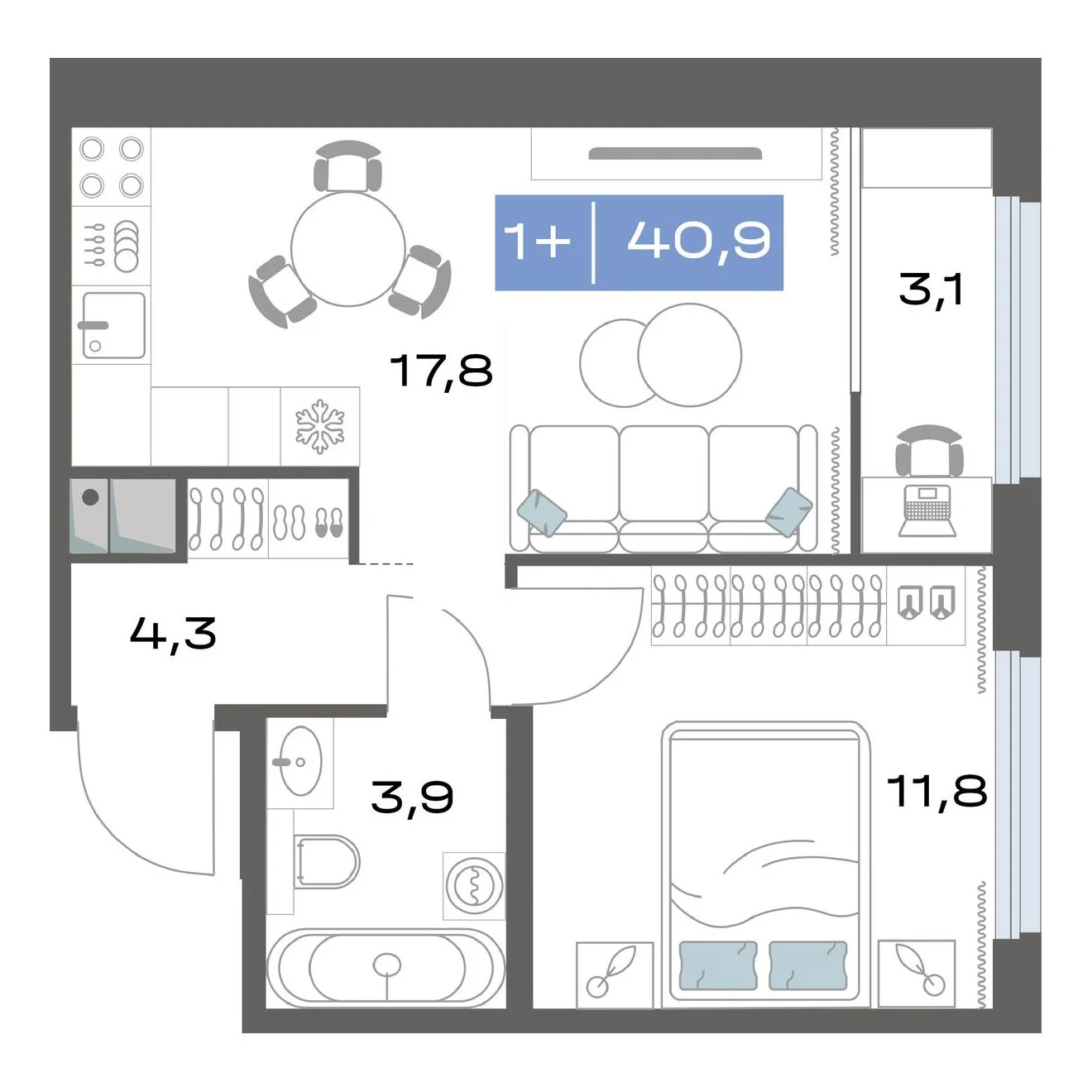 1-комнатная 40.9 м²