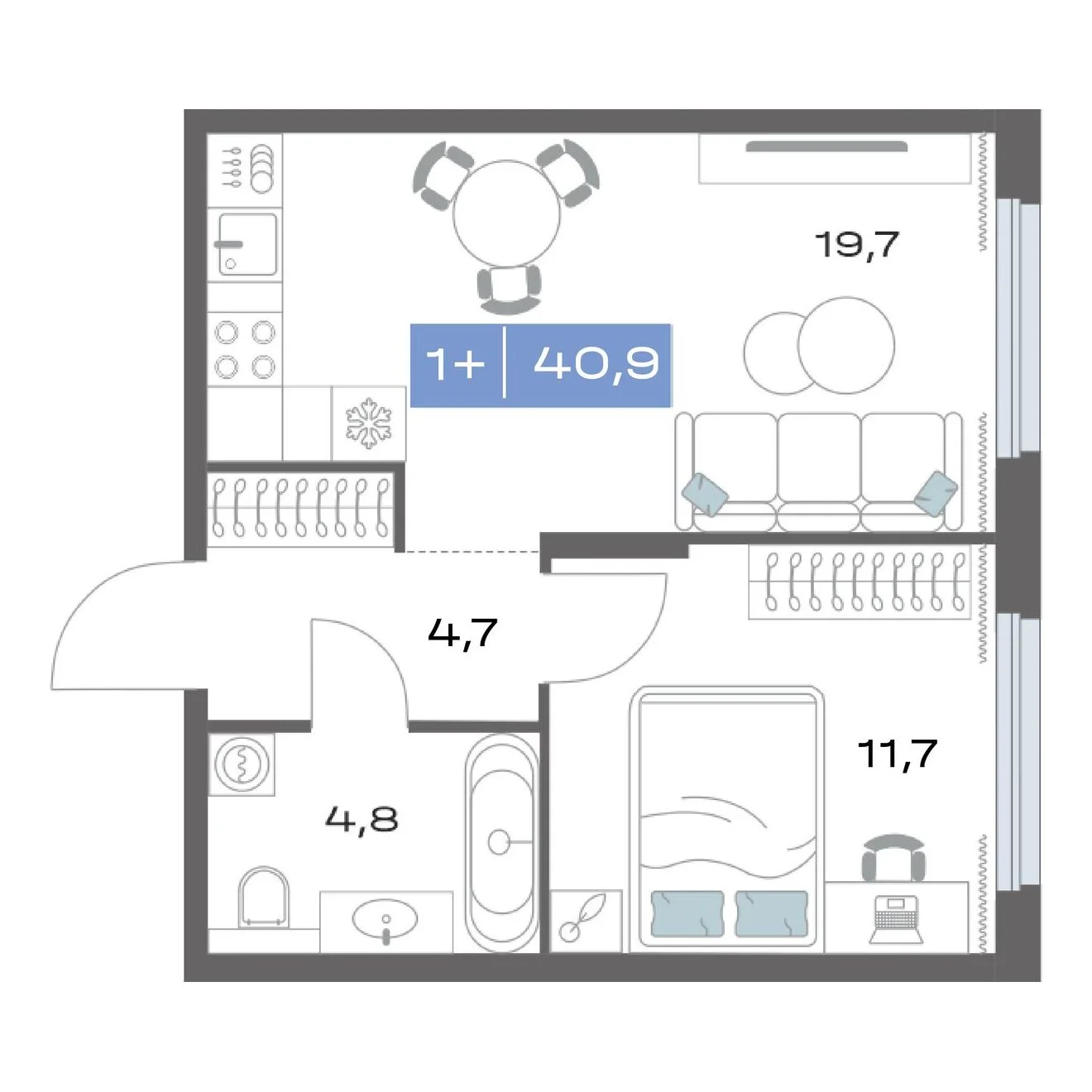 1-комнатная 40.9 м²