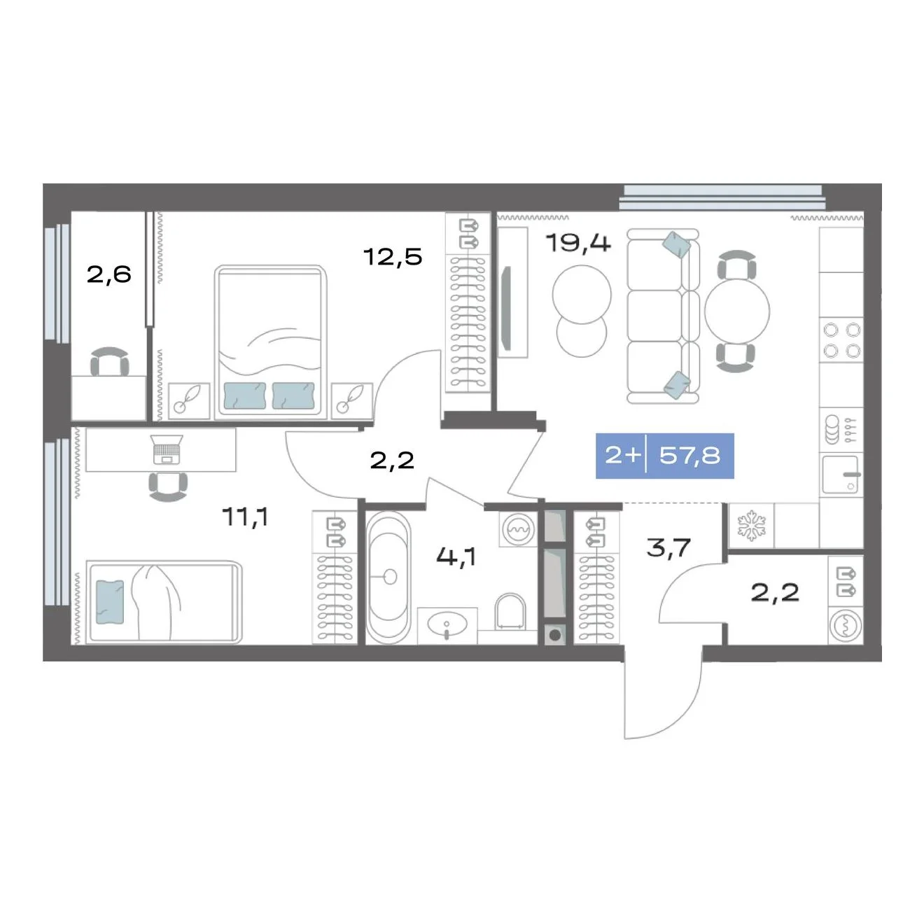 2-комнатная 57.8 м²