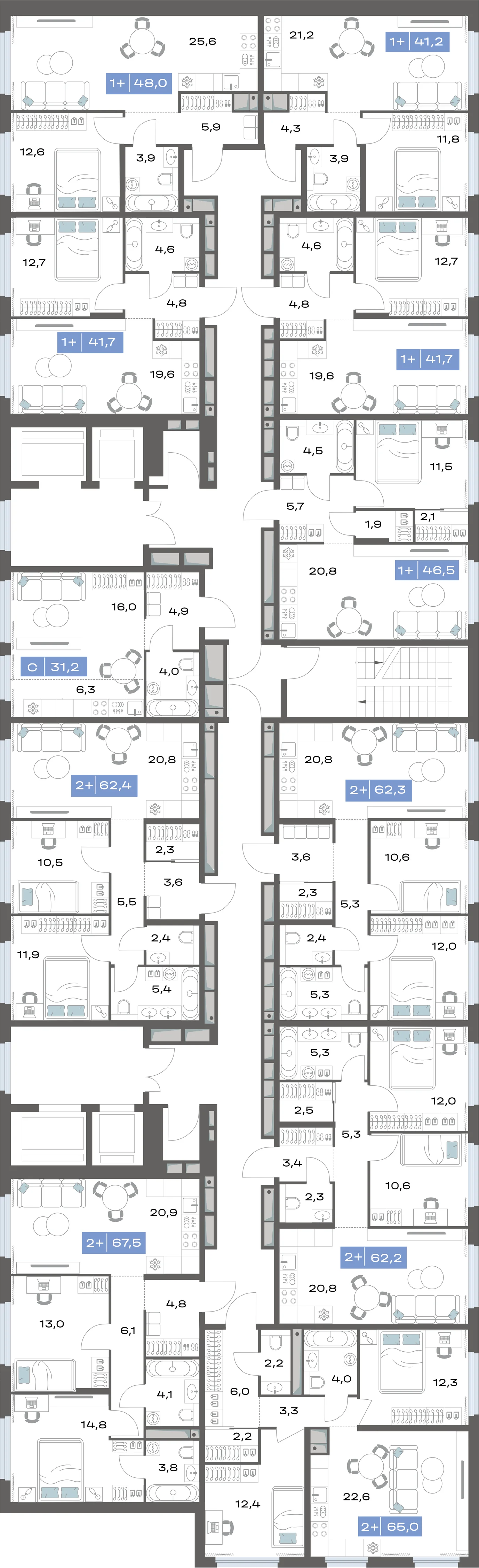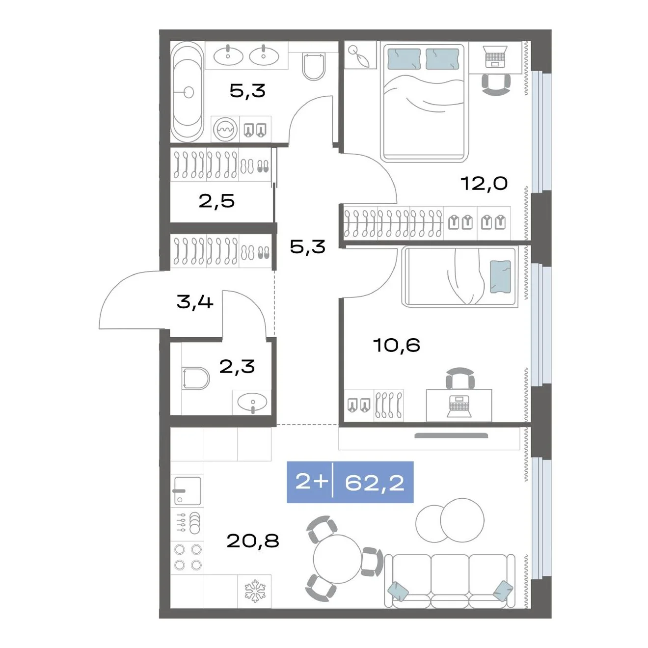 2-комнатная 62.2 м²