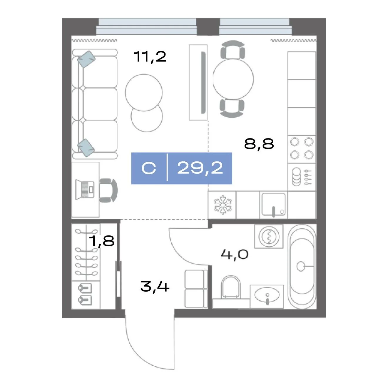 1-комнатная 29.2 м²