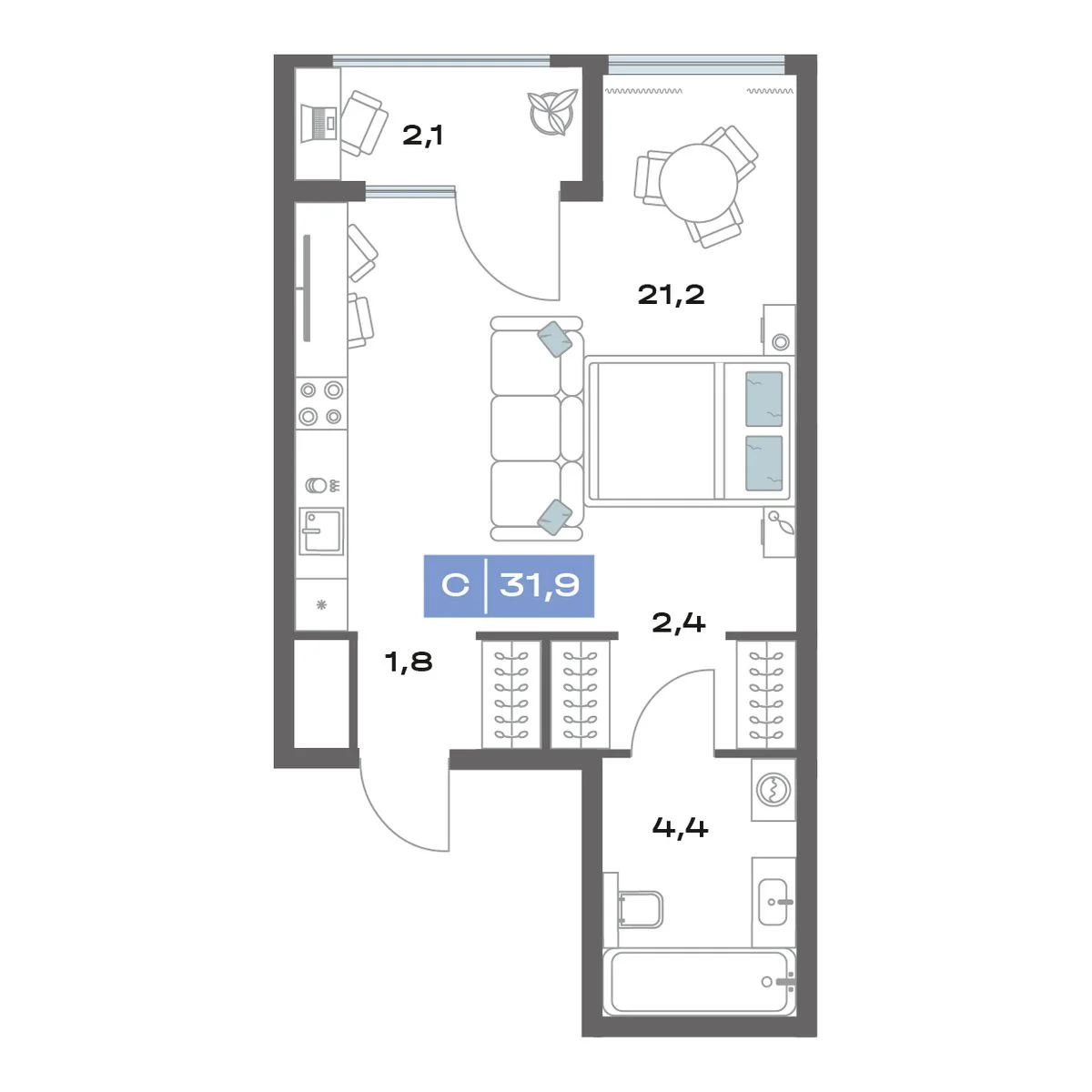 Студия 31.9 м²