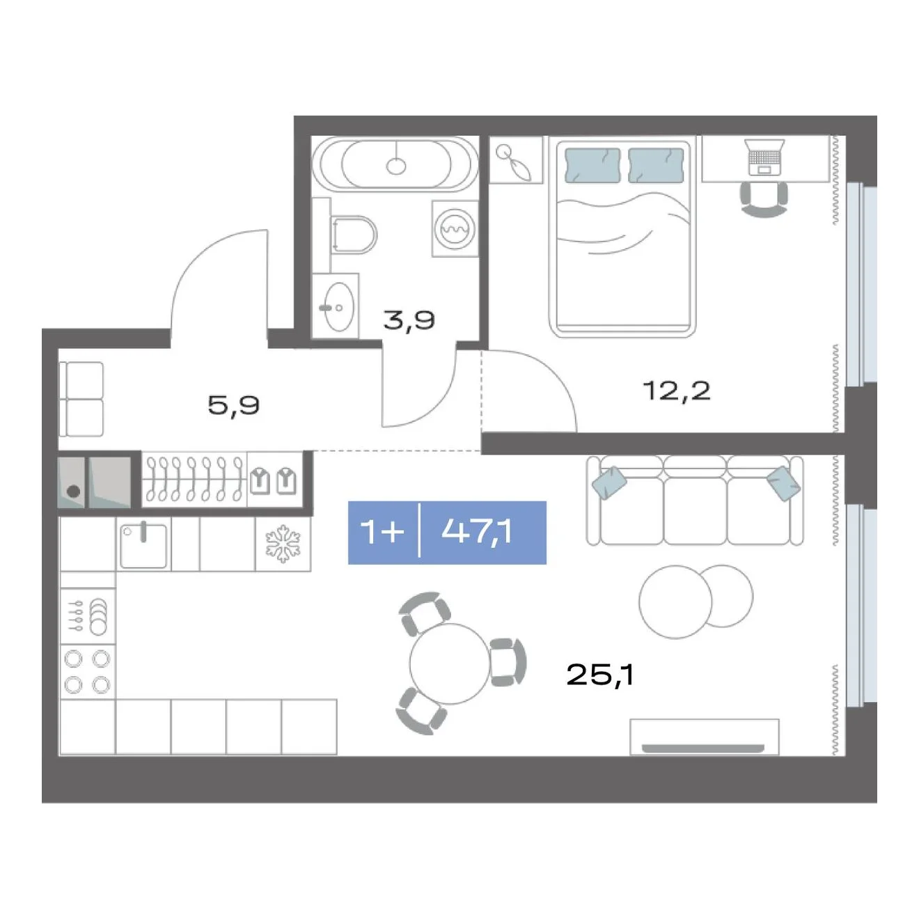 1-комнатная47.1 м23 этаж из 20