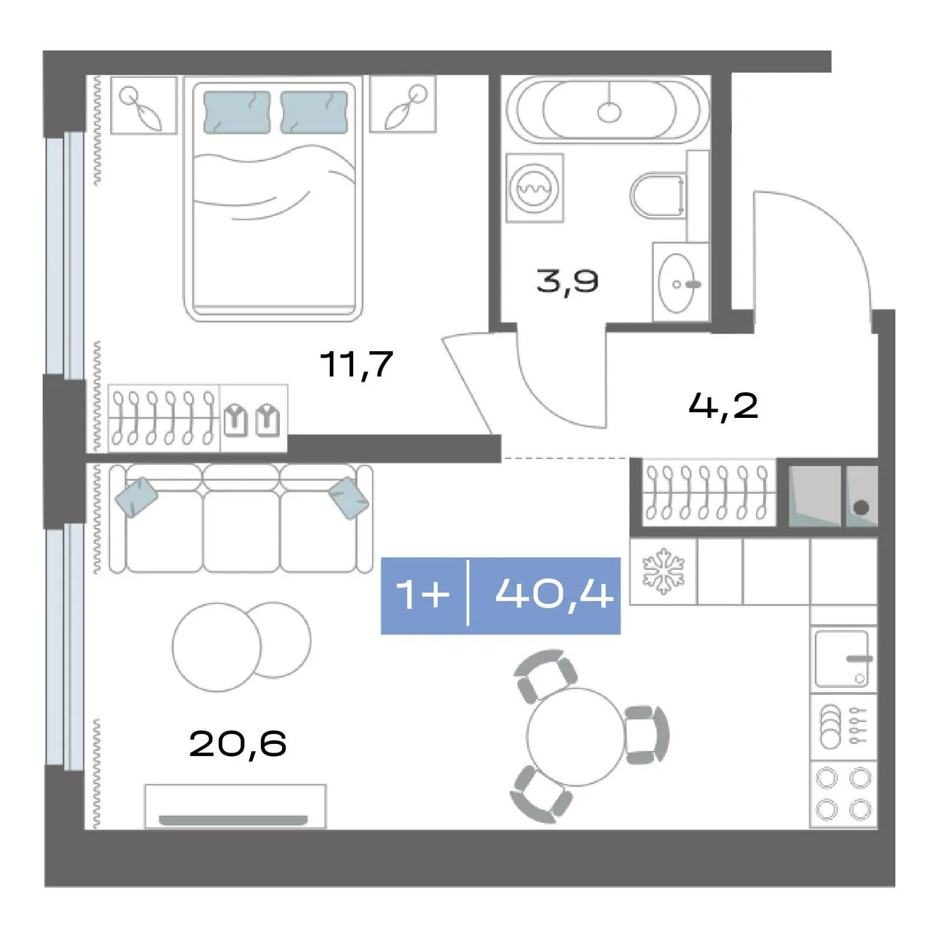 1-комнатная40.4 м23 этаж из 20